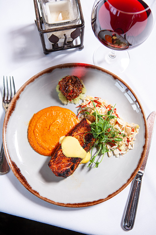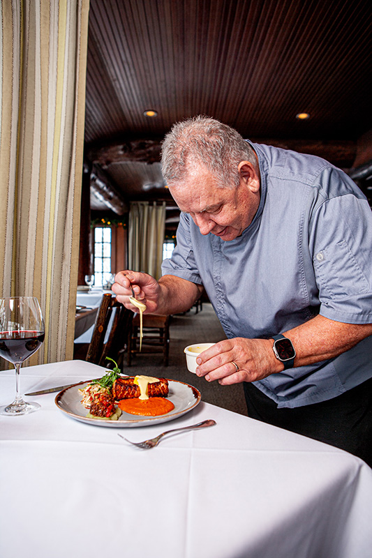 A romantic restaurant in the mountains, Log Haven’s rotating menu features local and regional organic ingredients.