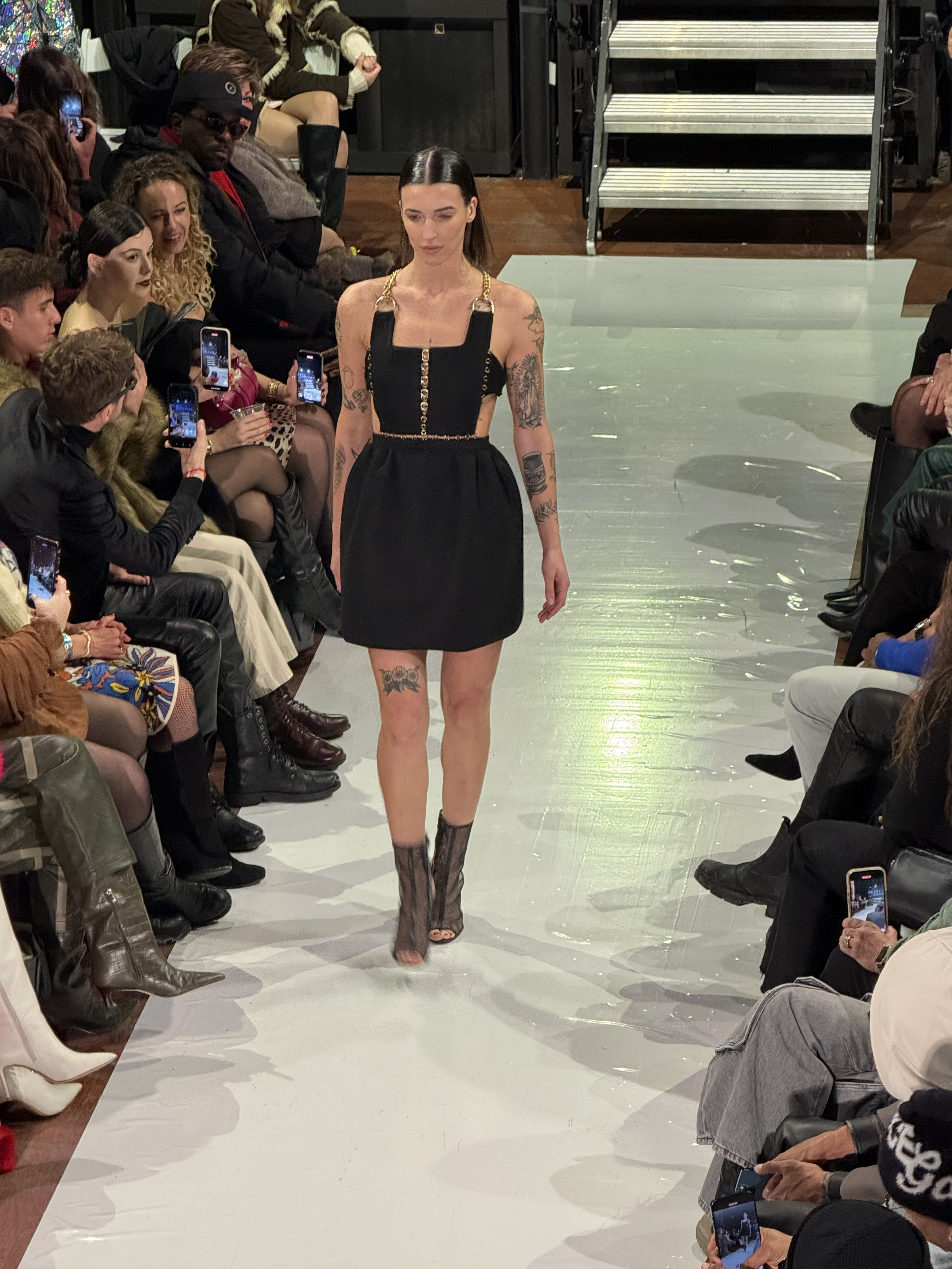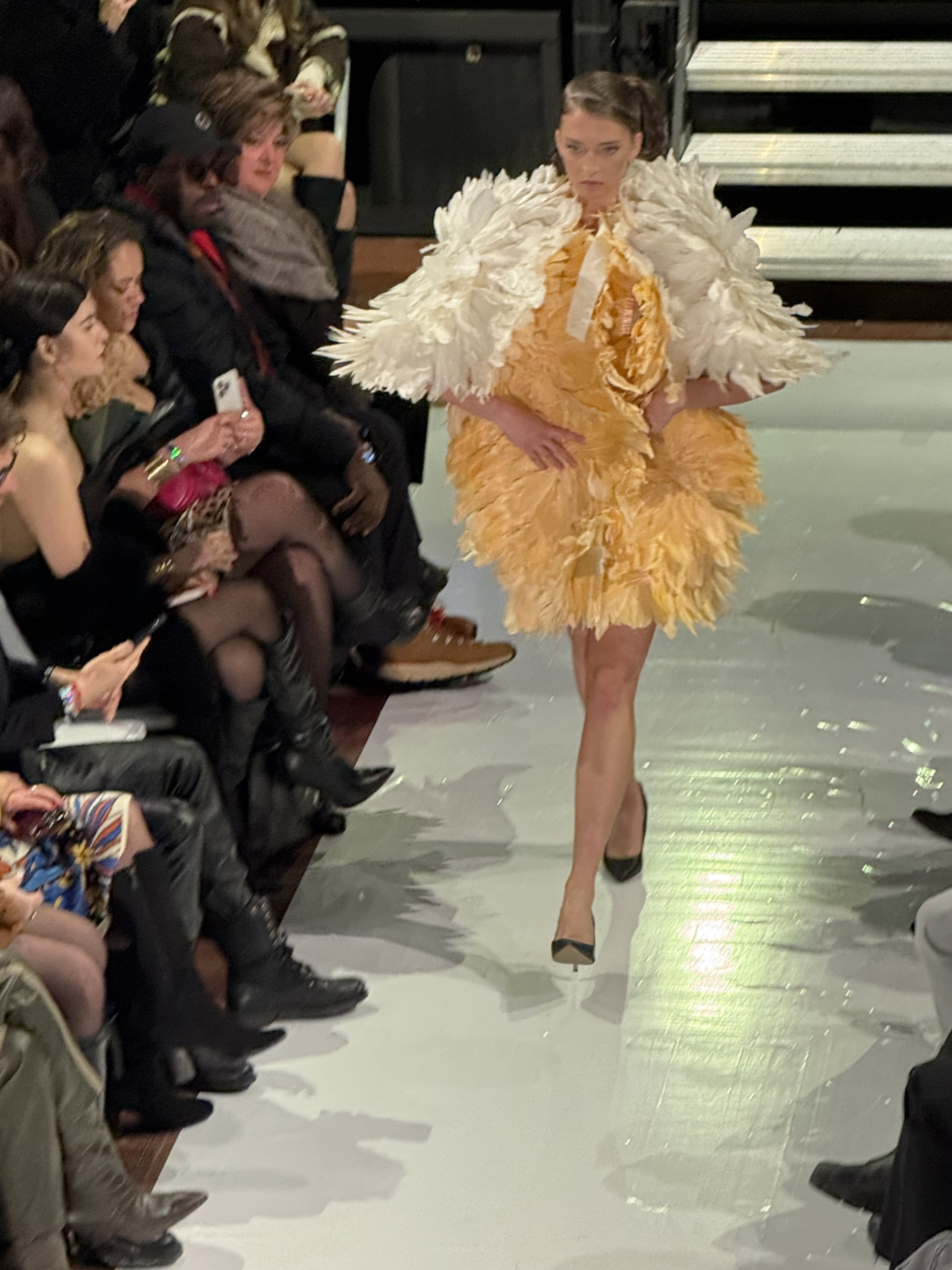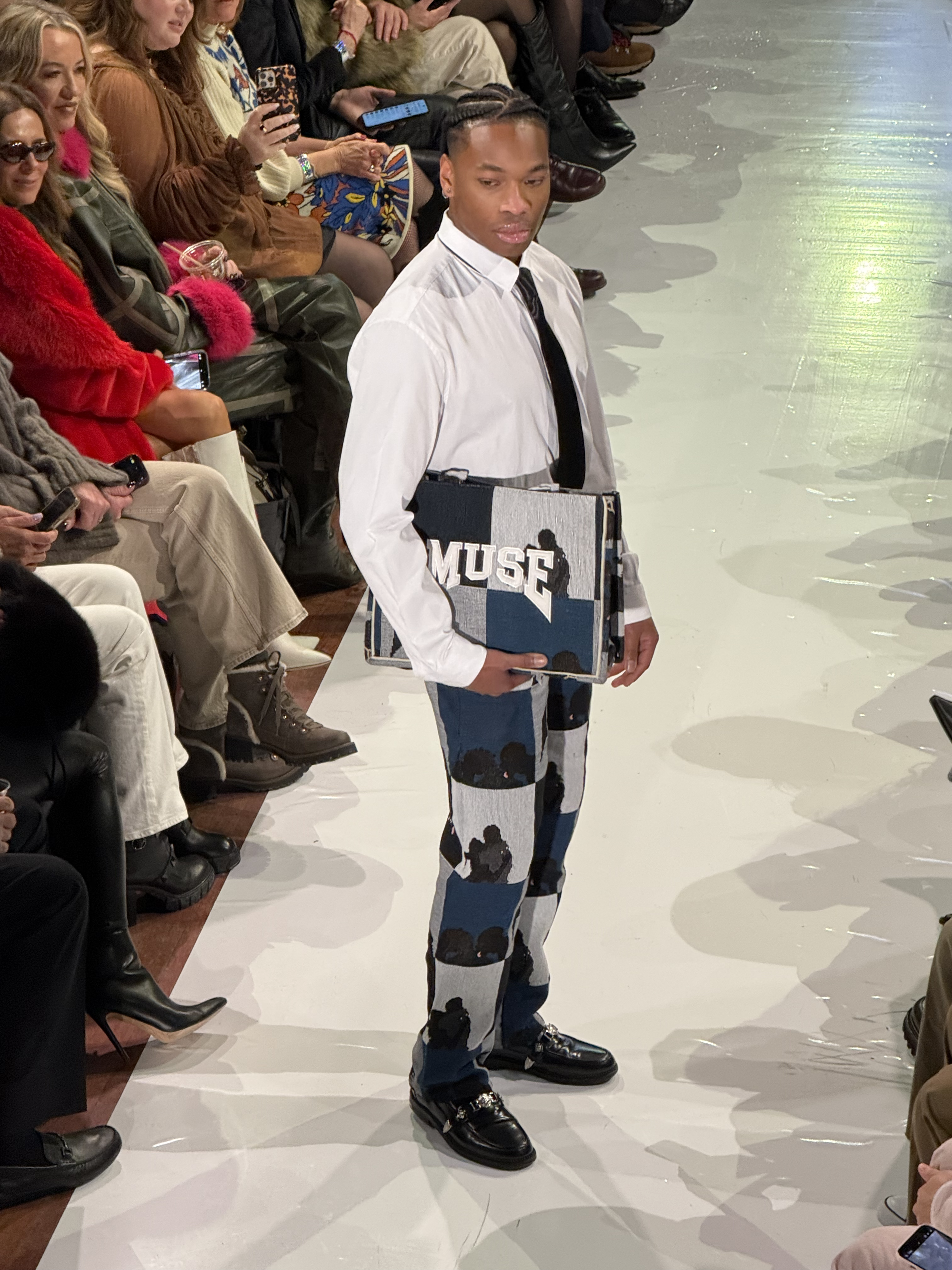 On the runway, models took the stage—and an alarming set of stairs—to show off looks ranging from Hannah Gordon’s illuminated pieces and statement streetwear conceptualized by Ogden brothers Phillip and Micah Petty of Soul By Amè to Sabrina Carpenter meets retro bridal looks by Hannah Ruth Zander, who was featured in Vogue.