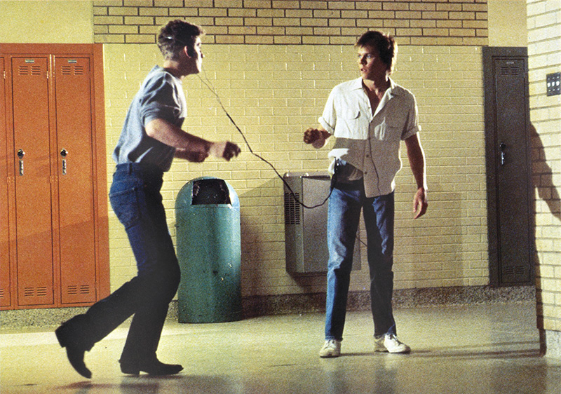 Christopher Penn as small-town Willard Hewitt with Kevin Bacon in Footloose (1984), inside Payson High School. Photo courtesy of Mary Evans/Ronald Grant/Everett Collection