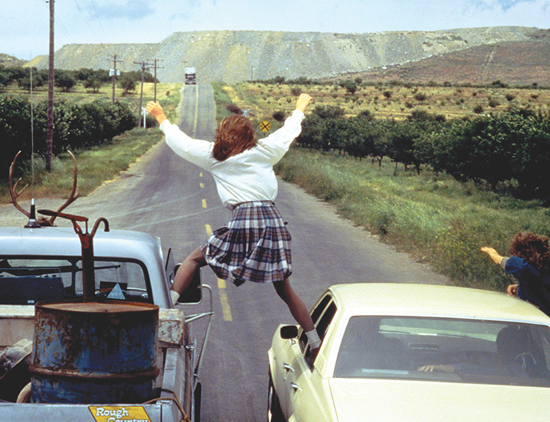 Lori Singer in Footloose (1984), filmed in Payson, Utah, driving through McMullin Orchards. Photo courtesy Everett Collection.