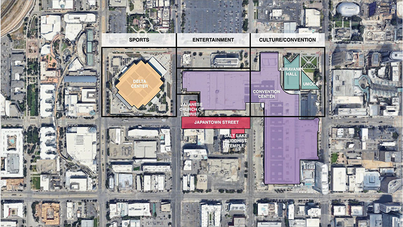 The above rendering illustrates the section of downtown Salt Lake City slated for the new sports and entertainment district.