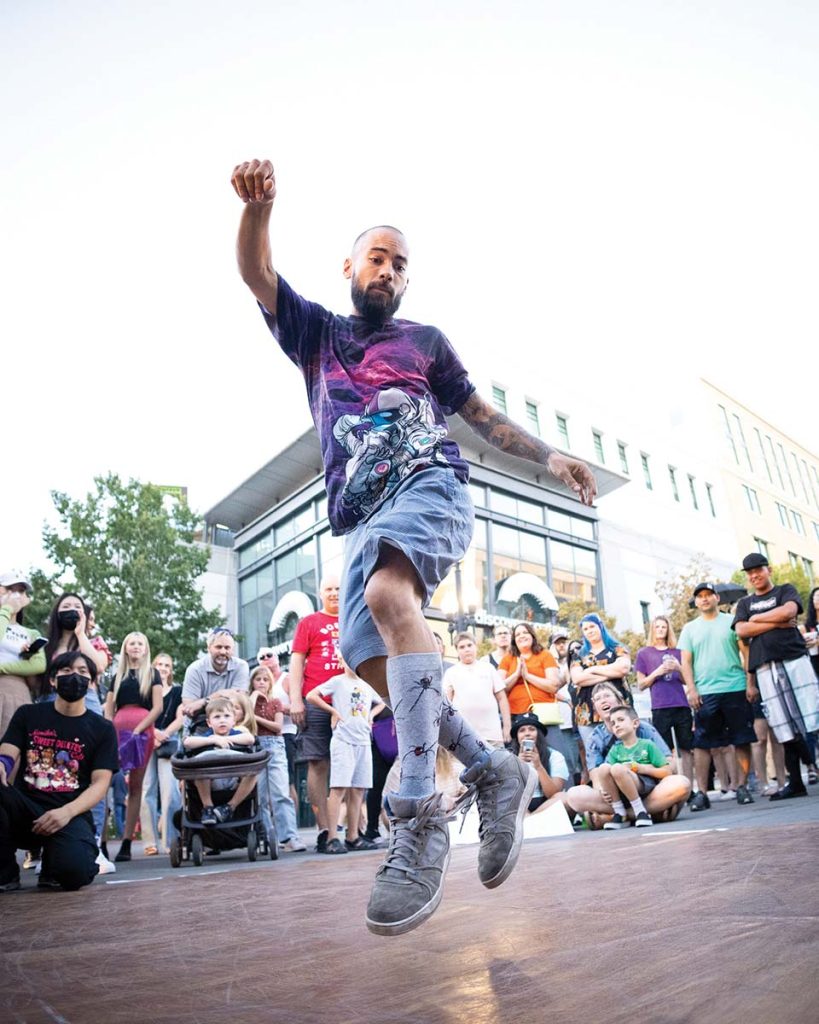 The Urban Arts Festival now takes over the Gateway in Salt Lake City every September, and it’s Utah’s largest free community art event, drawing an estimated 20,000 attendees and featuring 200 artists, performers and musicians. Among the core elements are local car club exhibitions and the annual Lowrider Hop Off. Of course, “It’s still the Urban Arts Gallery and the skate competition is a focal point of the festival,” says Aleman.