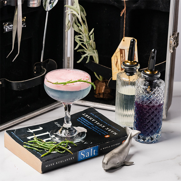 Built with Waterpocket Gin, Meliae and shochu, the cocktail’s soft blue-green base is tinted with blue spirulina to evoke the lake’s iconic color when it’s full of life. Crowning the top is an aromatic, silky red foam of tangy sumac, watermelon and hibiscus, symbolizing the hues of the concentrated salinity of the lake. A pickled sea bean garnish is a taste of the wetlands, which are a critical habitat for migratory birds. Now that’s a story.