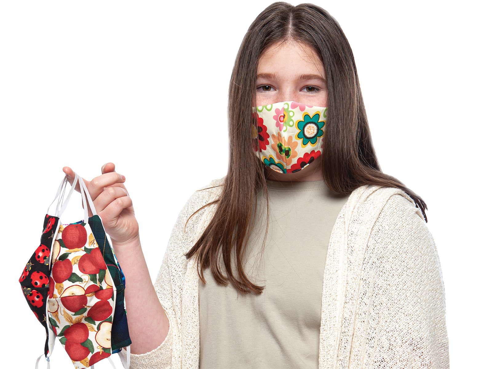 “I’m small. I’m 12. What can I do?” Brooke remembers asking herself when COVID-19 ramped up and schools closed. She’d recently taken up sewing, joining an after-school class with her friends that ignited a new passion—driving her to create potholders, denim quilts, baby blankets and even bowties for her two pet goats. (“They hate them,” she says with a laugh, “but they look so cute.”) Sewing also connected her with her elderly neighbor, Mardi Lessee, a highly-skilled seamstress who was happy to take Brooke under her wing.