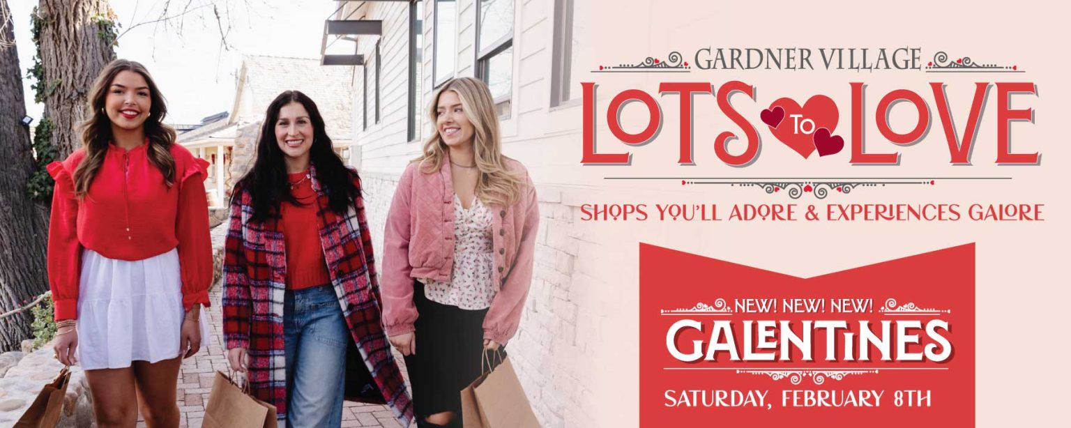 Grab your besties, have some fun and let us spoil you at Gardner Village‘s first-ever Galentines event celebrating friendships on Saturday, February 8, 2025 from 10am-6pm. Wear your favorite pink and red outfit and let our small shops and restaurants roll out the red carpet for you. From exclusive sales to Instagram-worthy photo ops, exciting giveaways, delicious food and plenty of pampering, this is the perfect excuse to make new memories with your favorite gal pals.