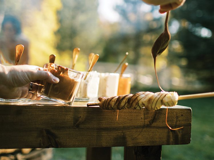 Who says roasting sticks are just for marshmallows? Try spearing a round of Brie, mozzarella or cheddar instead. Once it’s gooey inside, wrap it in a slice of Creminelli salami or prosciutto, then place it on a cracker for a smoky, savory bite. Craving something sweet? Add a square of local artisanal chocolate from Ritual or Amano for an indulgent twist.