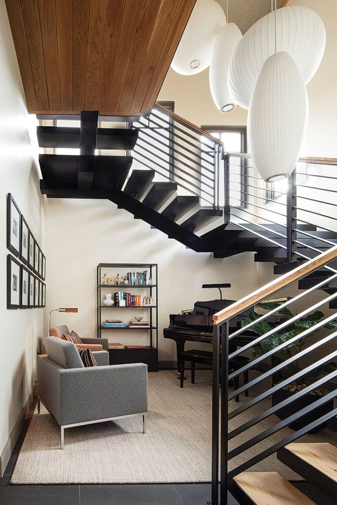A curated collection of midcentury classics—including a Saarinen table, Nelson Bubble Pendants and Eames stools—grounds the home in timeless sophistication. “This furniture mirrors today’s lifestyle—straightforward, clean and refined,” Hodson says. The result? A sleek yet soulful retreat, attuned to its alpine setting and the people who call it home.