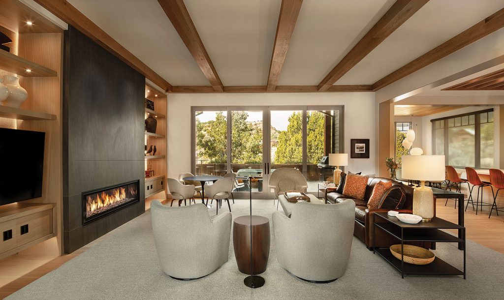 Call it a sequel, of sorts. After crafting a desert retreat steeped in midcentury-modern swagger, designer Gregg Hodson helped the same homeowners write a new chapter—this time in the mountains of Heber, Utah. Trading the sunbaked terrain of Ivins for the rugged beauty of the Red Ledges community, Hodson faced a familiar challenge: channel classic Mad Men-era style in a landscape dominated by rustic charm and log cabin vernacular.