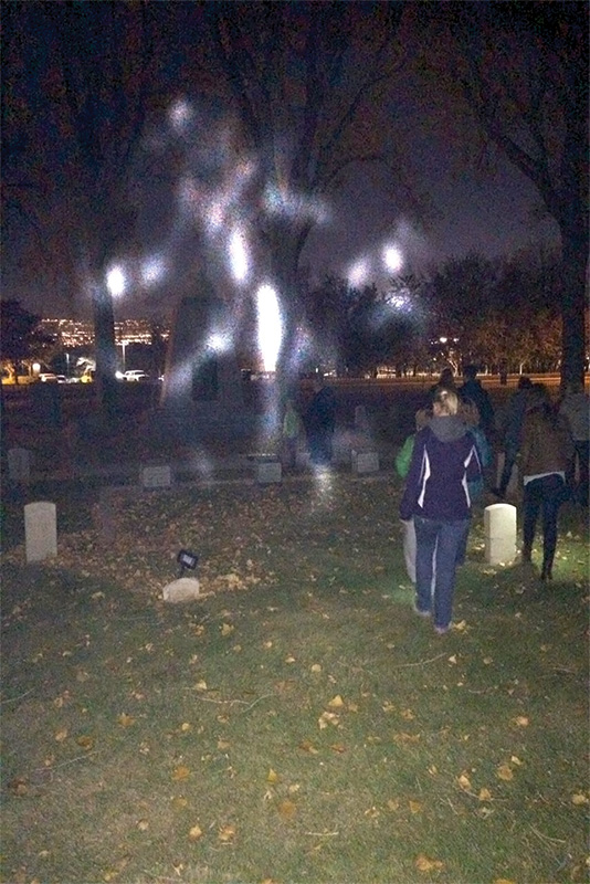 In a photo taken during one of her tours, a figure appears to hover above a gravestone. Wearing what appears to be a cavalry hat, his legs are spread wide as if straddling a horse. Like Clem, the Colonel’s spirit is intertwined with Fort Douglas and doesn’t seem to be leaving anytime soon.