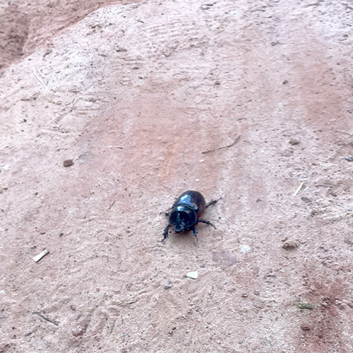I hope my partner knows this will be the first of many critters for whom I will stop to acquaint myself today. Because my partner is the best adventure buddy, it isn’t long before he is giving fantastic names to all of our animal friends along the way (including a hefty little Canyon Tree Frog enthroned in the center of a large boulder named Kidd Rock—no relation). On this hike, we also encounter darkling beetles (you may know them as stink bugs), pools full of tadpoles, rock squirrels, dace, plateau lizards, flame skimmer dragonflies and a hardy little rhinoceros beetle.