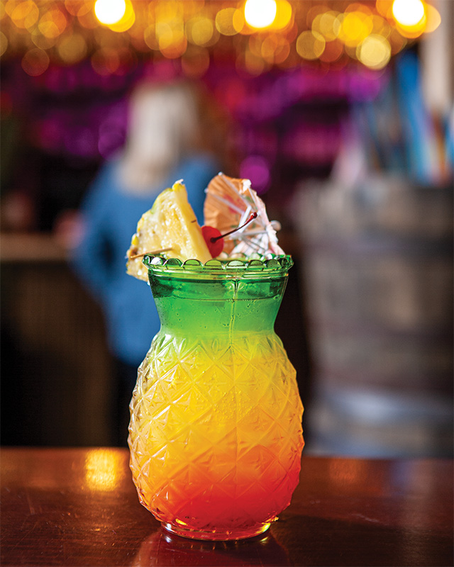 Almost overnight, Why Kiki became a Salt Lake hotspot. The response was nearly overwhelming, but with the help of community members and strong-willed staff, Oveson says Why Kiki has come out on top. “Our motto has been surviving, striving, and thriving,” he explains. “We are finally out of the surviving stage and we are back to reflect on how to make the experience even better.” And Why Kiki is just that: an experience. Tropical decor and flattering lighting bathe the room in chill. The main beach bar offers more than 30 cocktails meant to be slung quickly and served in fish bowls and tiki mugs. Food offerings feature classic bar fare with a twist, like their signature Chicks and Dicks brunch item, which combines crispy chicken tenders with penis-shaped waffle bites (Joseph Smith, what has this city become!?) When you feel like a change of scenery, head to the basement to check out the speakeasy with its silent disco, or lounge in the covered patio and various private rooms. “The idea is that people can barhop within the same space,” Oveson says.